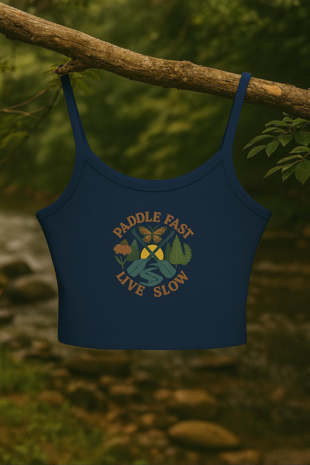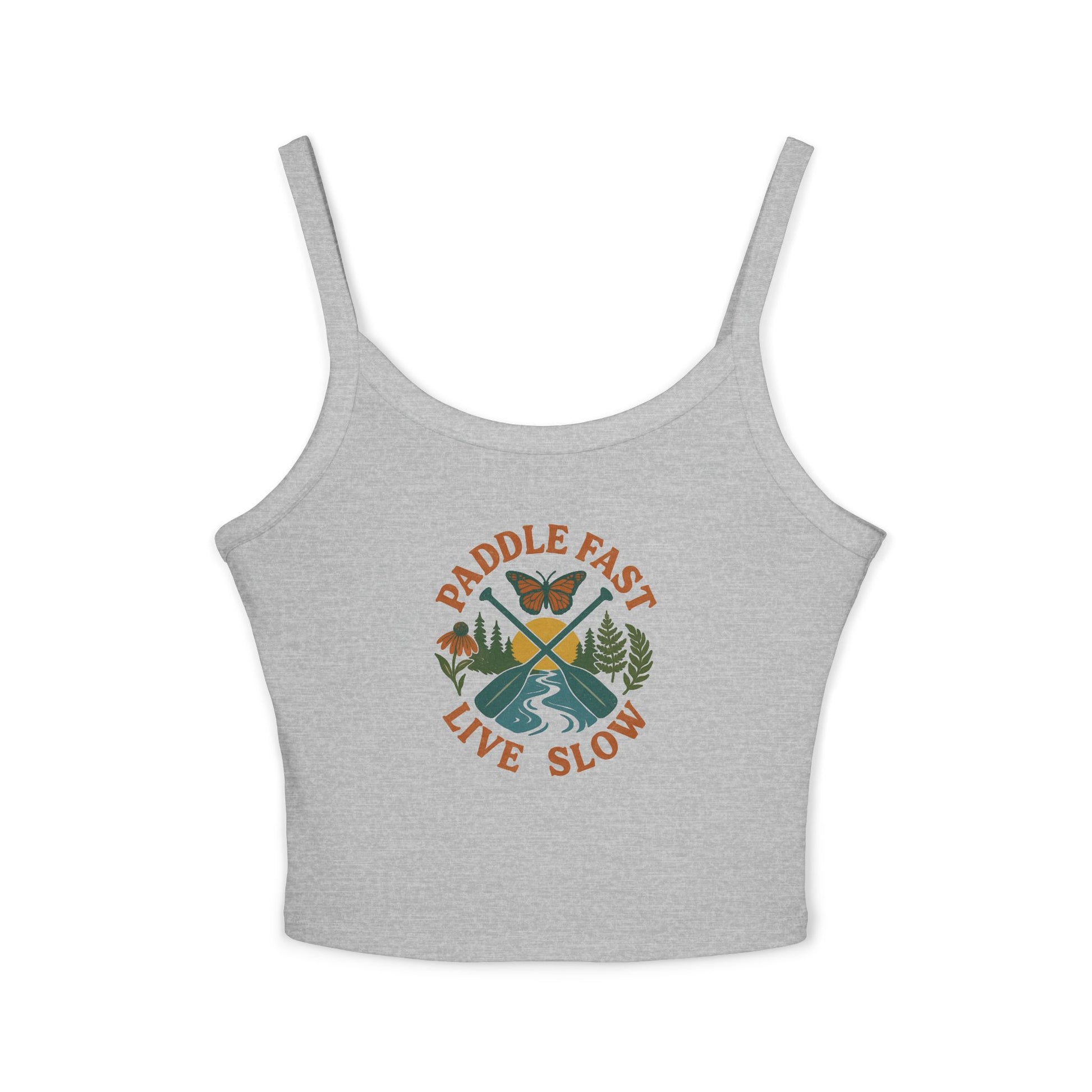 Adventurous Women's Spaghetti Strap Tank Top - Paddle Fast Live Slow, Summer Apparel, Boho Fashion, Outdoor Wear, Eco-Friendly Clothing