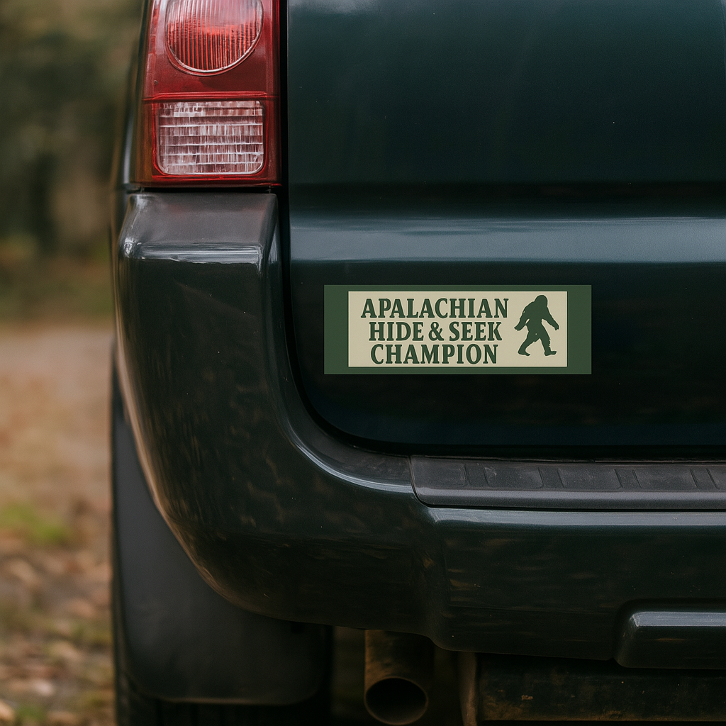 Appalachian Hide & Seek Champion Car Magnets | Fun Outdoor Decor, Unique Gifts for Bigfoot Lovers, Home and Car Accessories