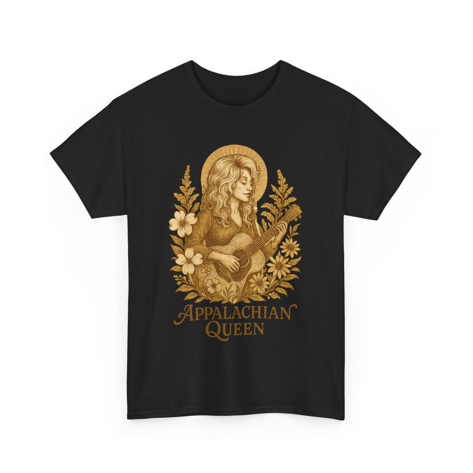 This country music T-shirt features an Appalachian Queen strumming her guitar, giving off a rustic and musical vibe. Perfect for country music enthusiasts and music lovers, this tee is great for casual wear or attending music festivals and concerts.
