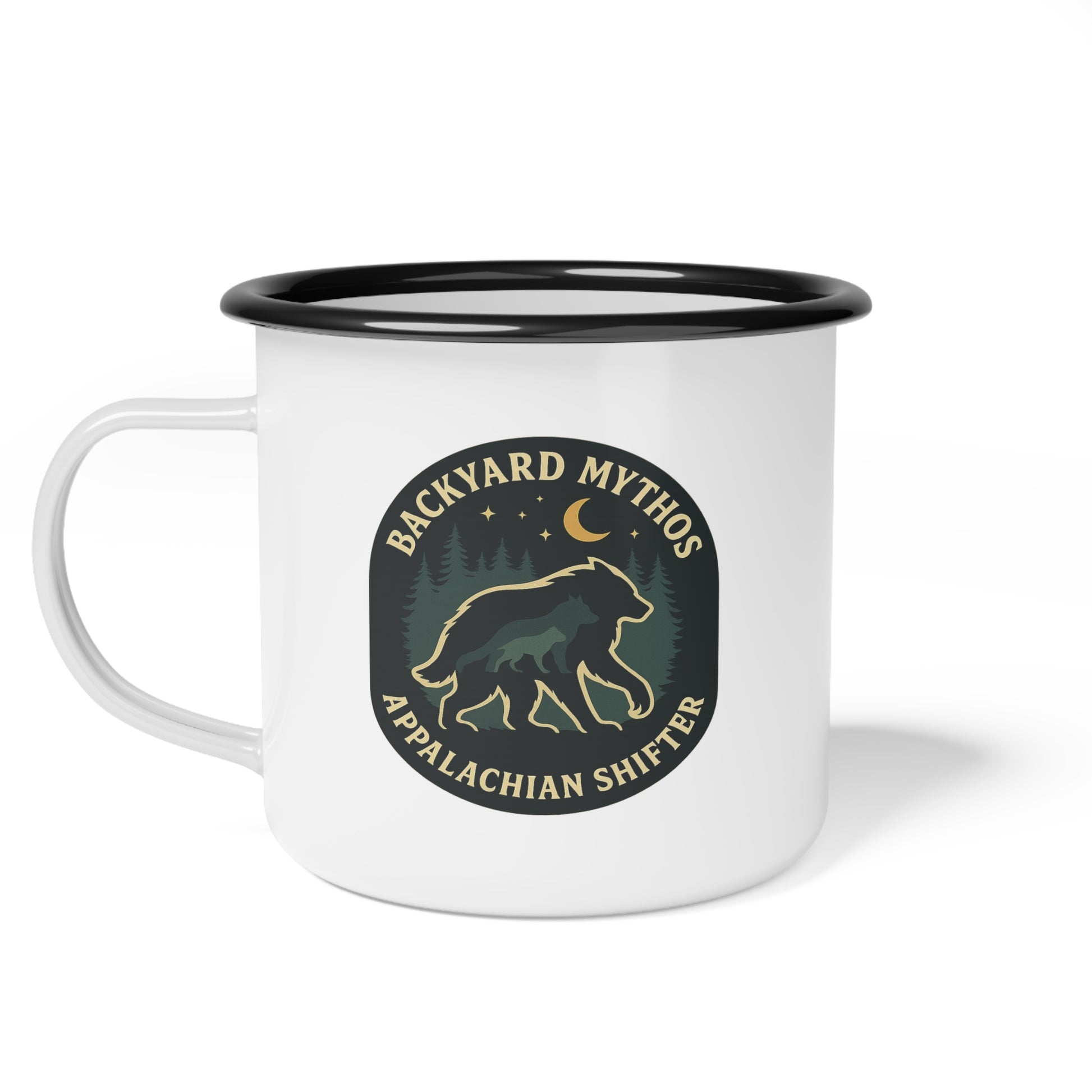 Appalachian Shifter Enamel Camping Mug – Shape-Shifter Cryptid Design