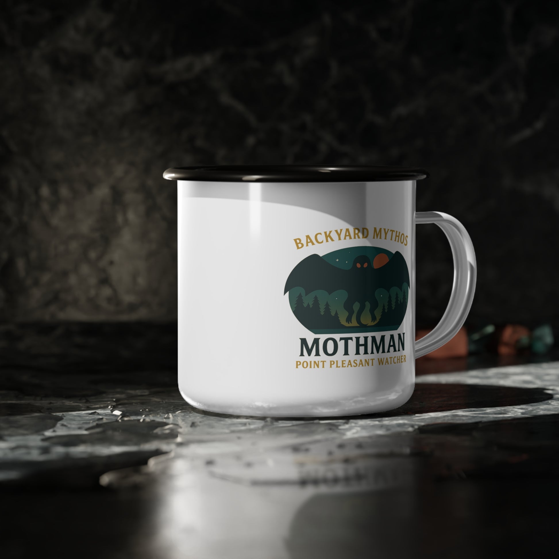 Backyard Mythos Moth man Enamel Camping Mug – Point Pleasant Watcher