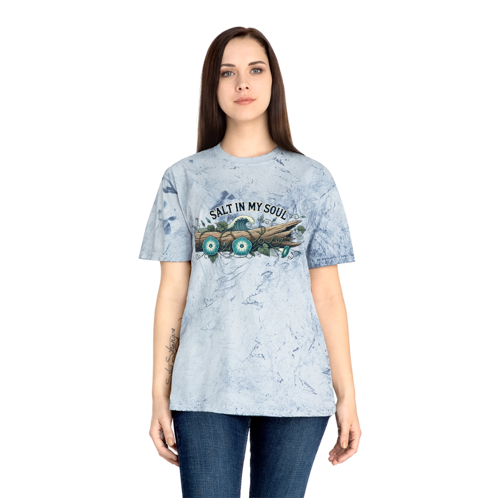 Get ready for summer with this Salt in my soul tie-dyed beach t-shirt. Perfect for beach lovers and those who enjoy a laid-back, carefree vibe. This relaxed fit t-shirt is ideal for beach vacations, summer parties, and casual outings.