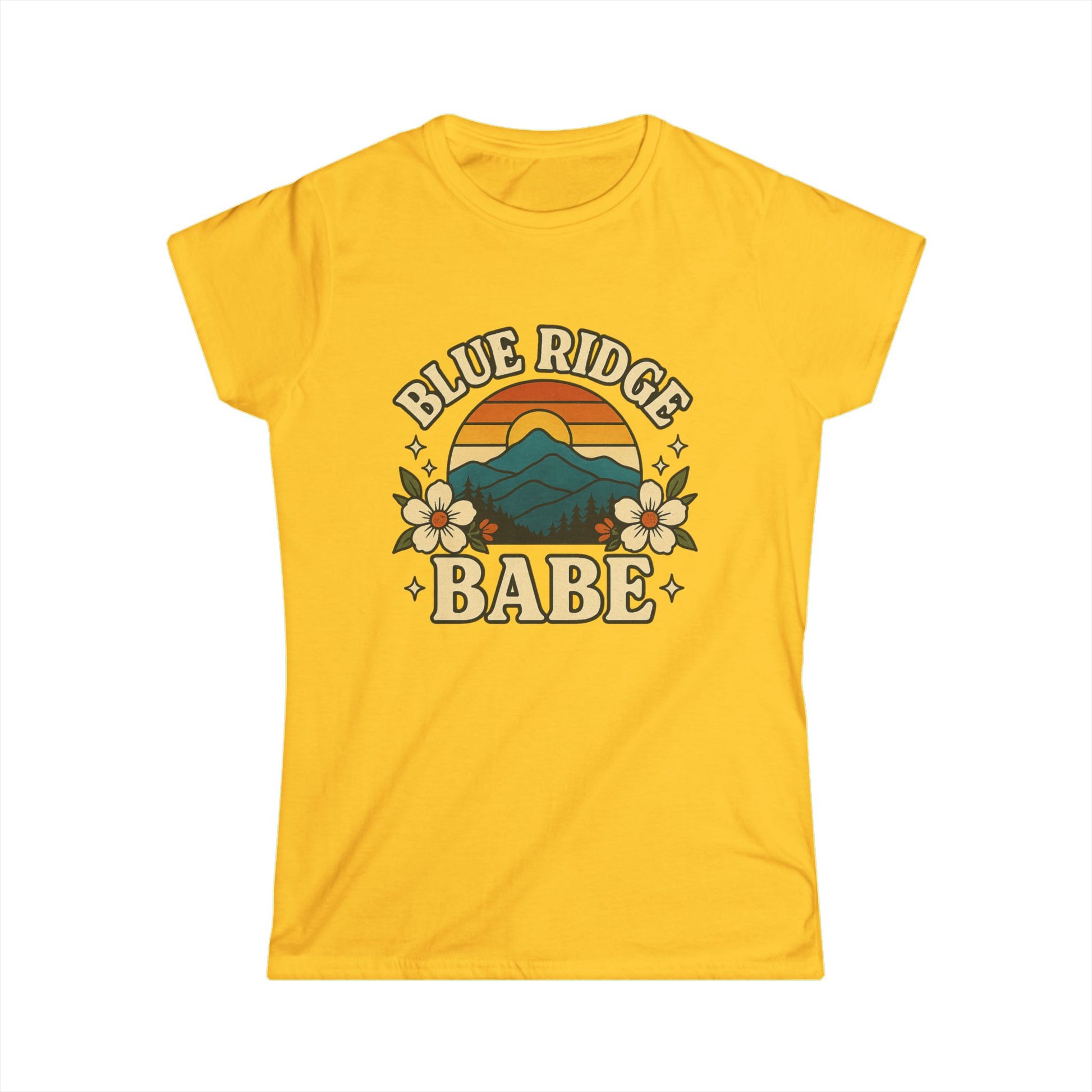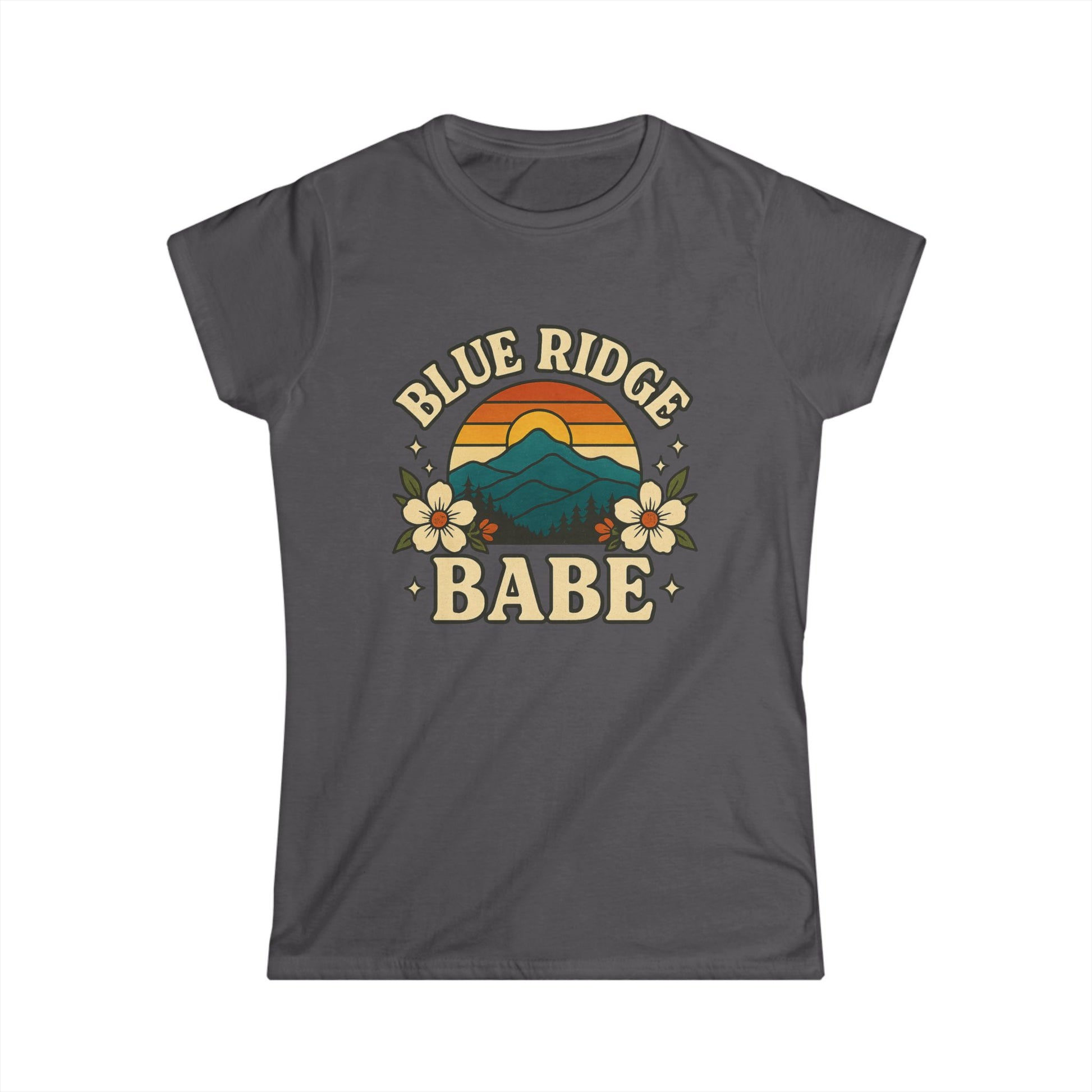 Blue Ridge Baby Women's Softstyle Tee, Mountain Graphic Shirt, Vintage Style T-Shirt, Outdoor Adventure Clothing, Hiking Apparel, Nature