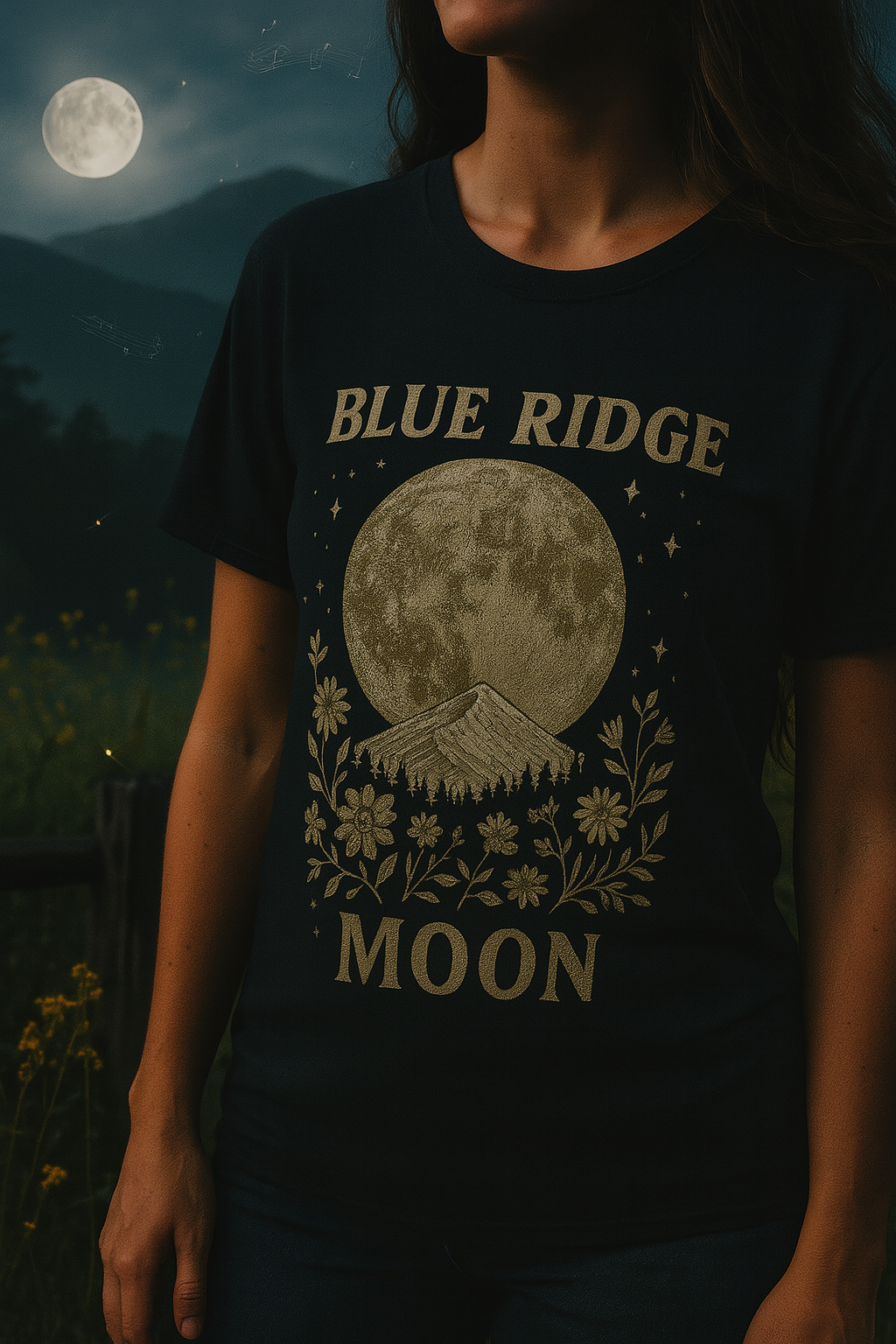 This celestial T-shirt featuring a Blue Ridge moon design gives off a serene and mystical vibe. Perfect for astrology enthusiasts and nature lovers, this T-shirt is ideal for casual wear or lounging around. Great for gifting on birthdays, holidays, or any special occasion.
