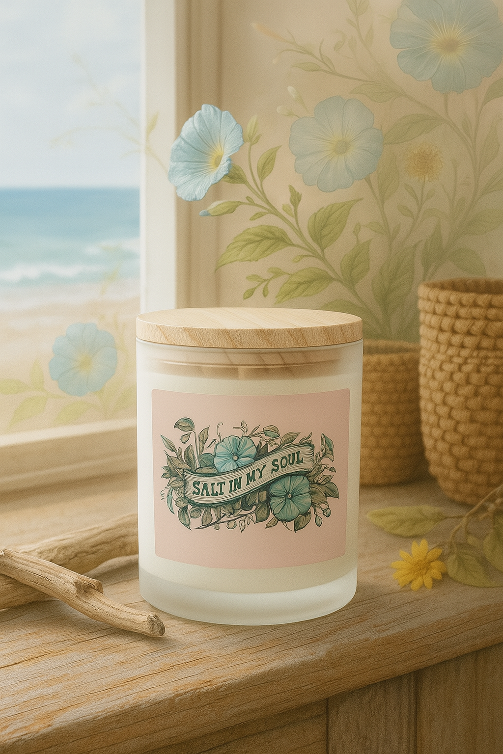 Driftwood Frosted Glass Candle | Salt in My Soul | Eco-Friendly Aromatherapy Decor for Spa, Home, Gifts, Self-Care, Rejuvenation