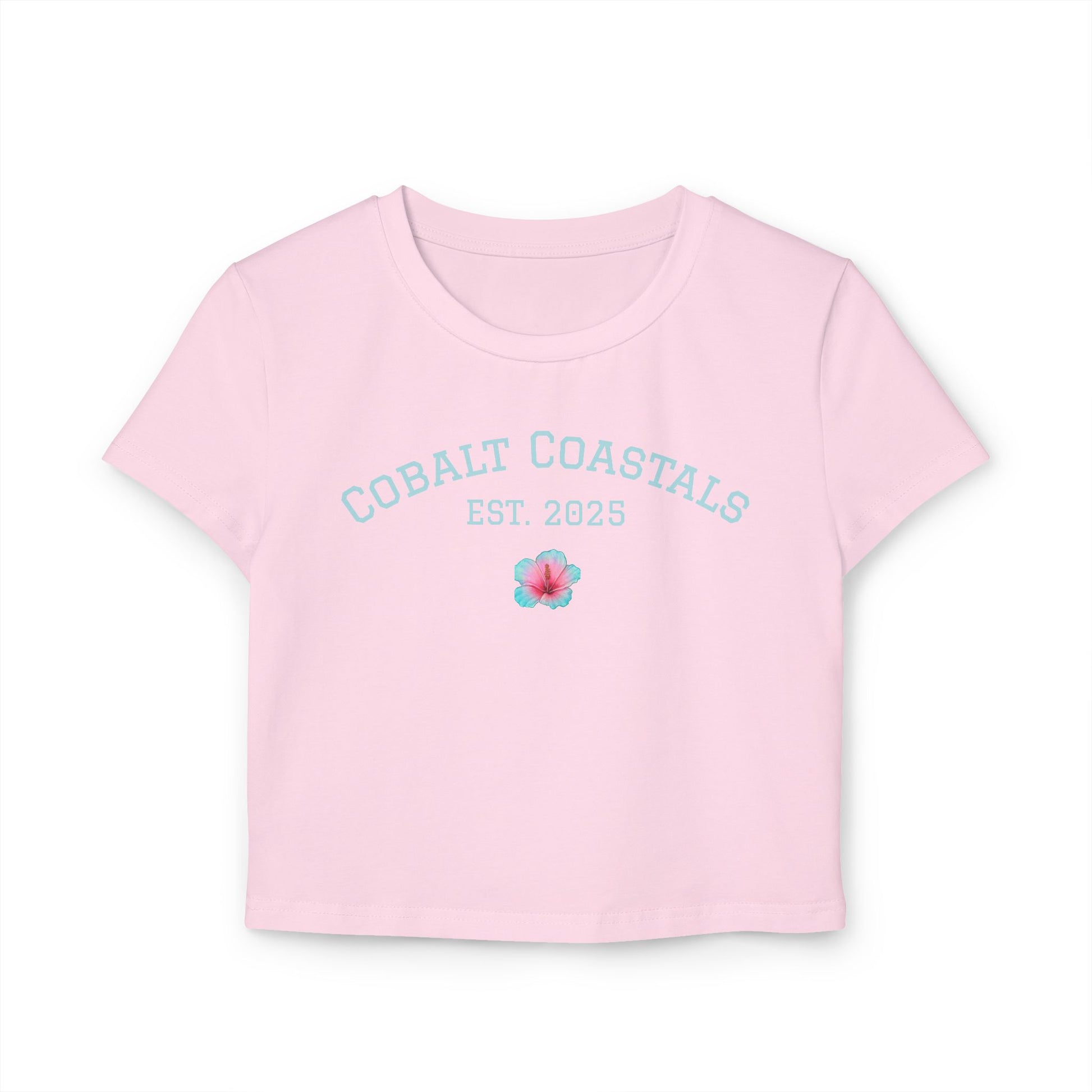 Stay stylish and comfortable in this beach cropped tee featuring university lettering and a pink and blue hibiscus flower. Perfect for those looking for a casual and summery vibe to add to their wardrobe. Ideal for beach trips, summer parties, and casual outings.
