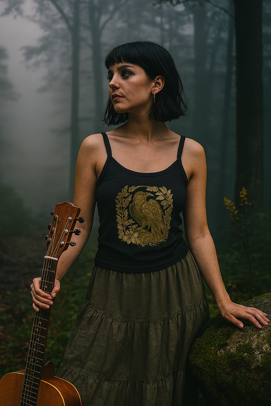 Step into your shadowy side with the Raven Tank from our Dark Appalachia collection π€. This cropped tank top features a captivating raven and floral design, bringing gothic elegance to your warm-weather wardrobe. With thick spaghetti straps and a flattering mid-length cut, itβs perfect for layering at music festivals, moonlit gatherings, or haunted hikes through the hills.