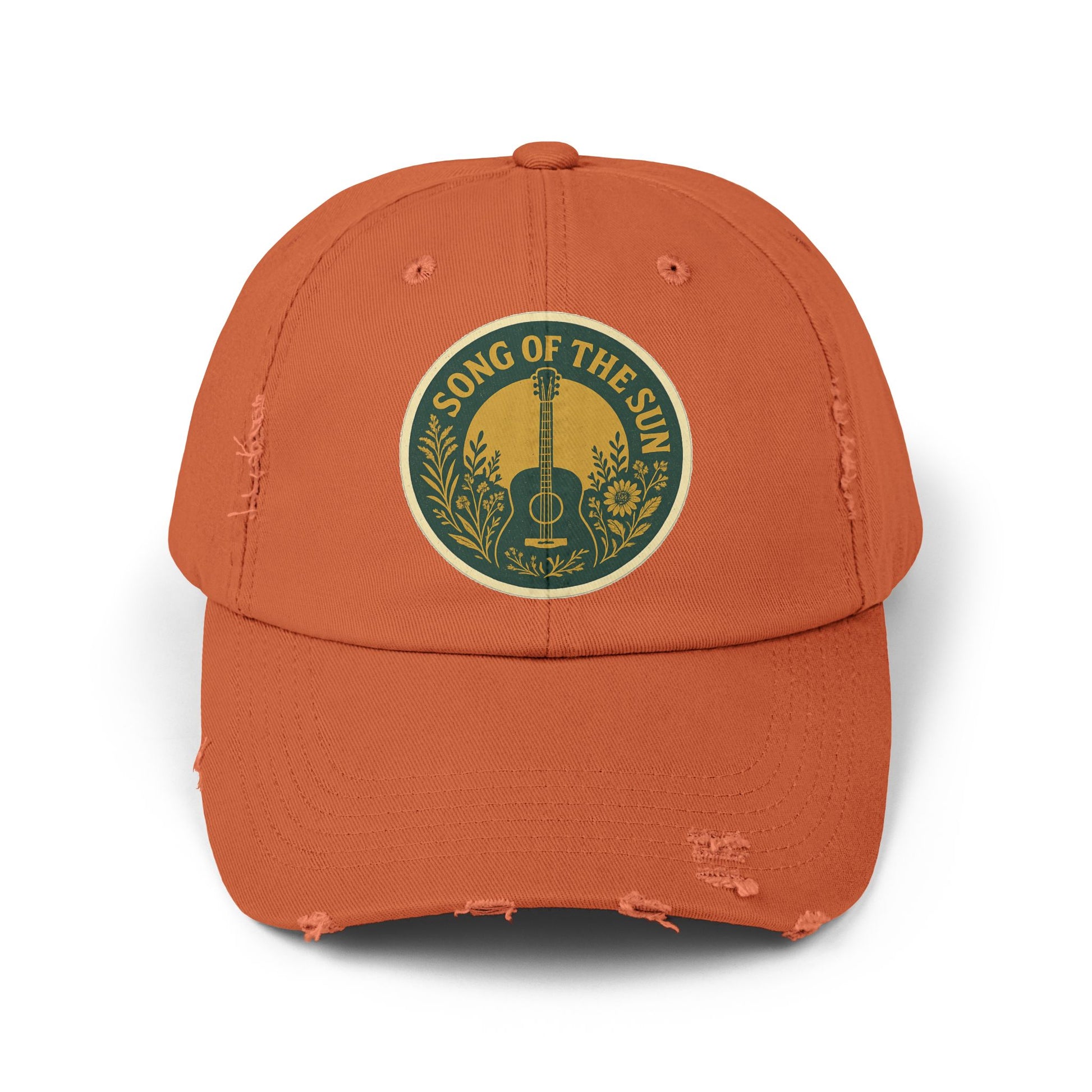 From our Song of the Sun collection, this distressed vintage cap is a must-have for summer concerts. It gives off a cool, laid-back vibe and is perfect for music lovers and festival-goers. Ideal for outdoor events, beach days, and casual outings.