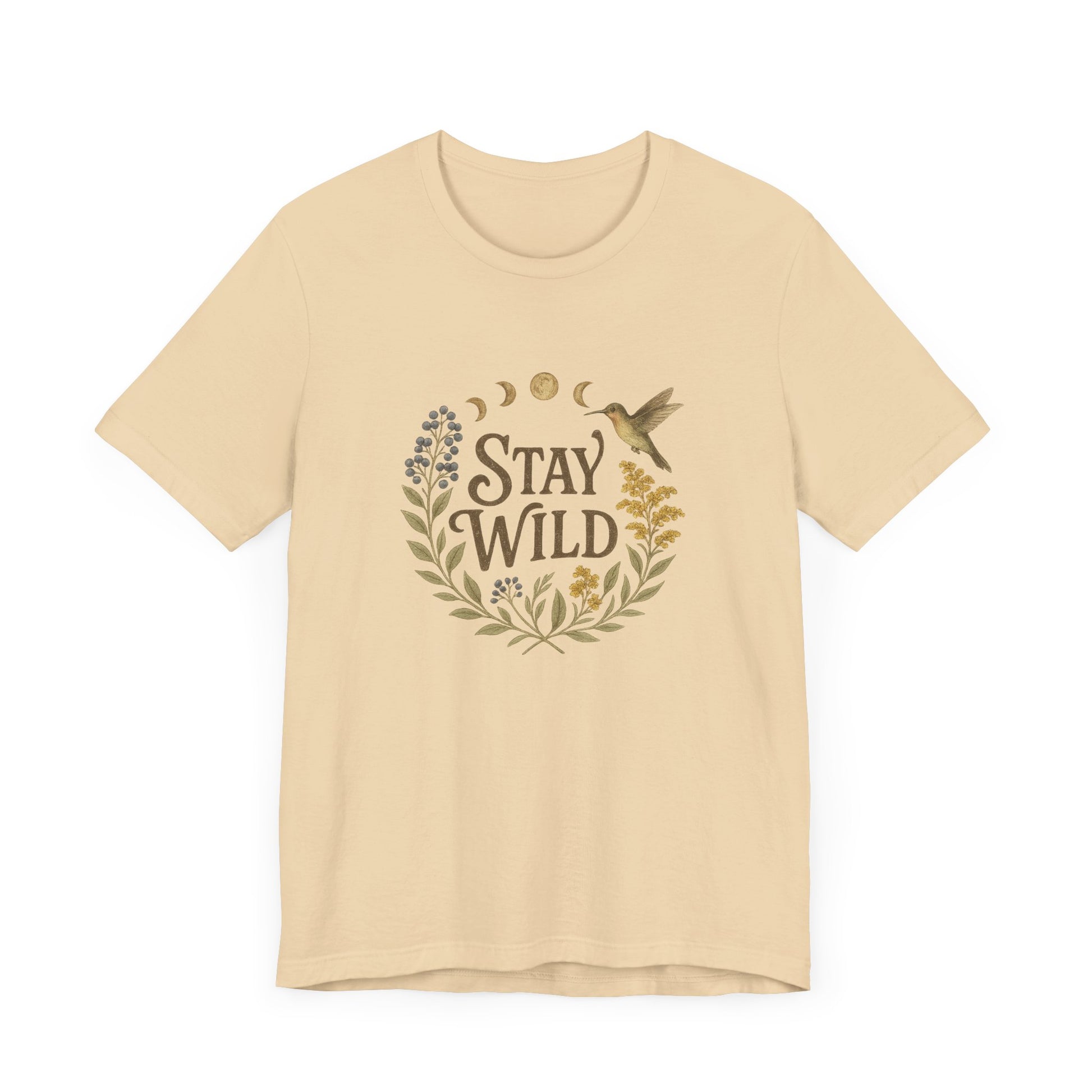 Enchanted Stay Wild Hummingbird Tee, Moon Phases Nature Vibes Tshirt, Colorful Bird Moon Shirt, Unisex Jersey Top, Nature Lover Gift
