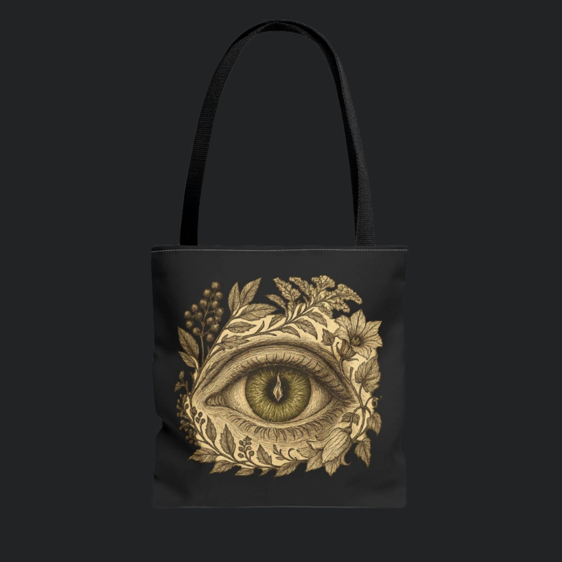 🌿 The Green Flame Eye Tote – Mystical, Moody, and Made to Be Noticed