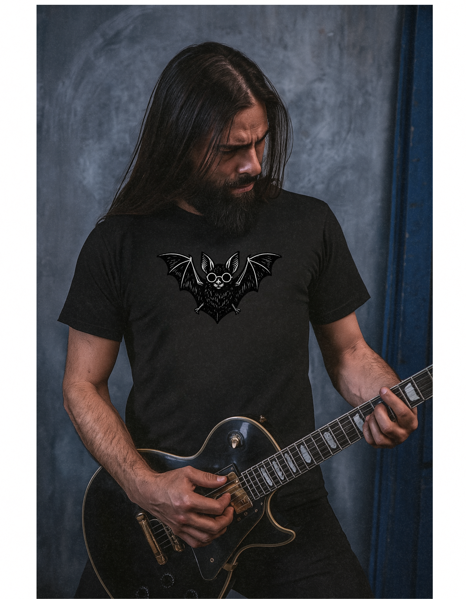 Step into the shadows with this unisex gothic T-shirt featuring a winged bat in round sunglasses on the front and a candlelit gothic arch arch print on the back. A tribute to rock legends and creatures of the night, this dark, edgy design blends vintage concert tee energywith occult flair. Printed on soft cotton, it's perfect for festivals, late-night drives or just summoning your inner madman,