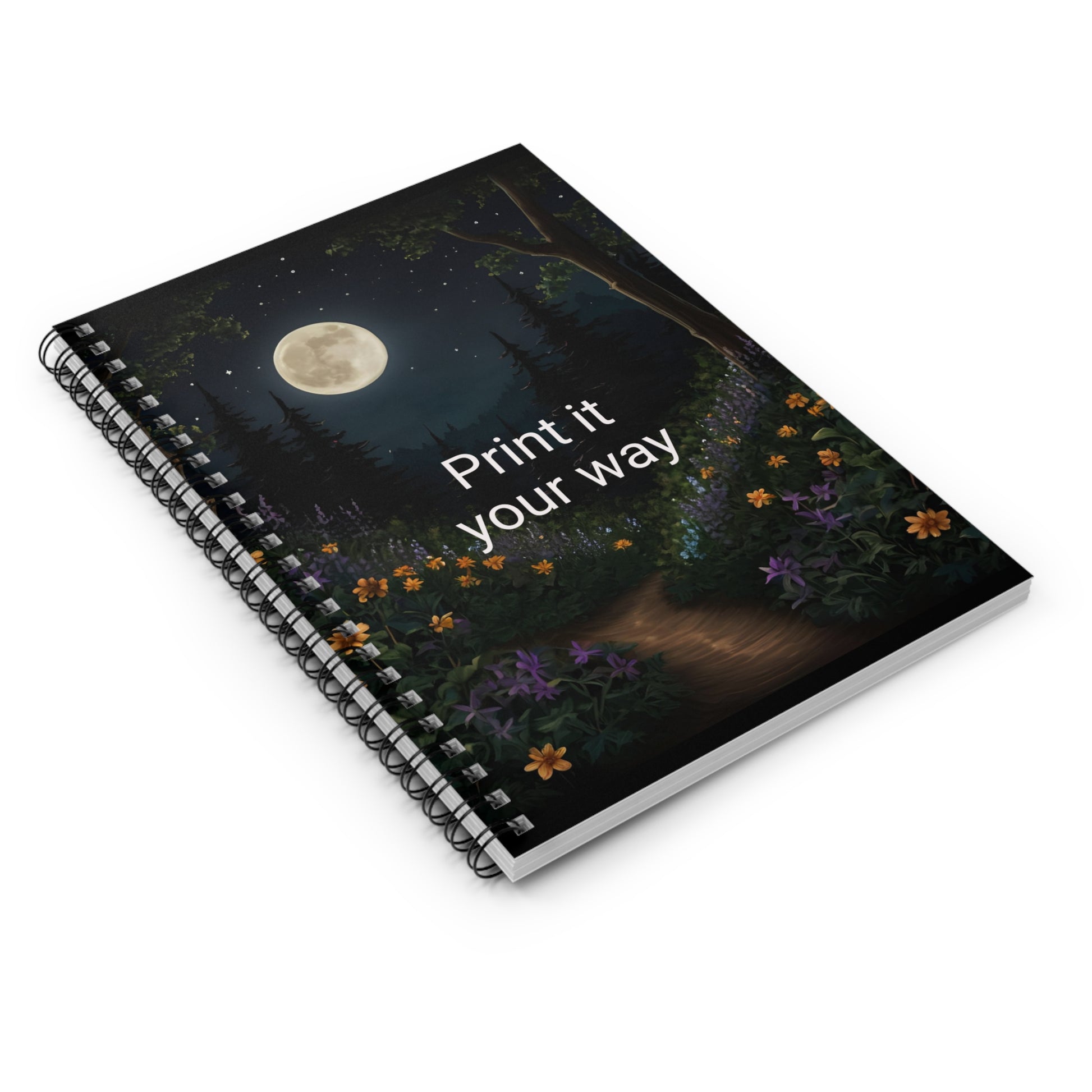 Moonlit Garden Spiral Notebook - Ruled Lines, Floral Writing Journal, Moon Phase Planner, Nature Lover Gift, Nighttime Inspiration