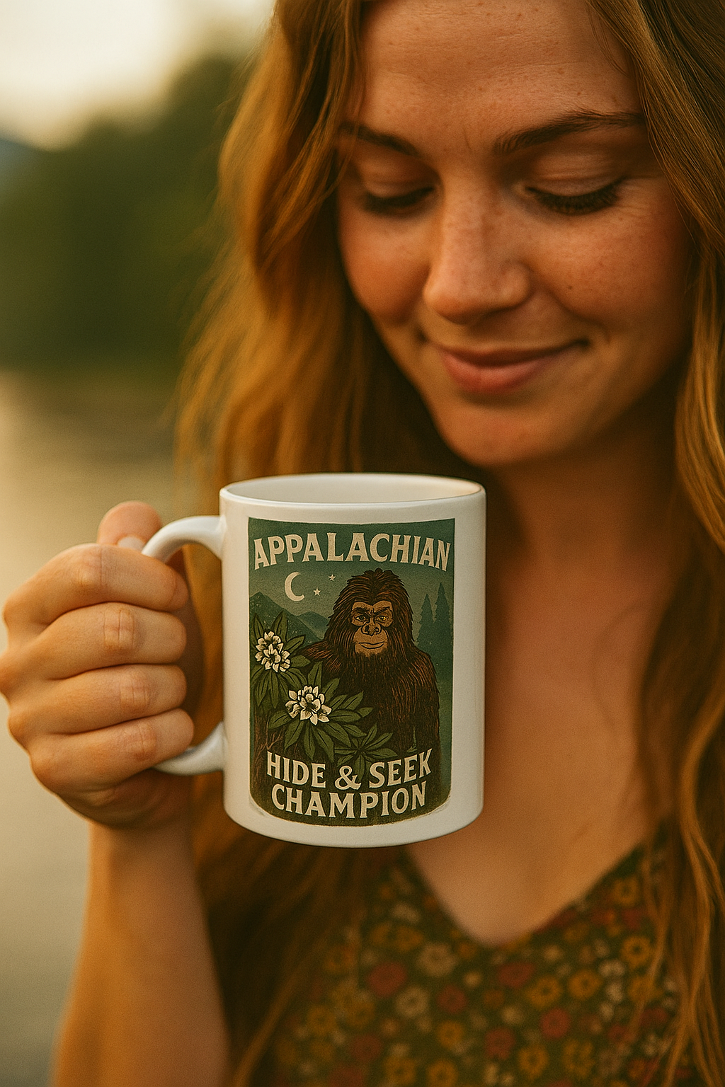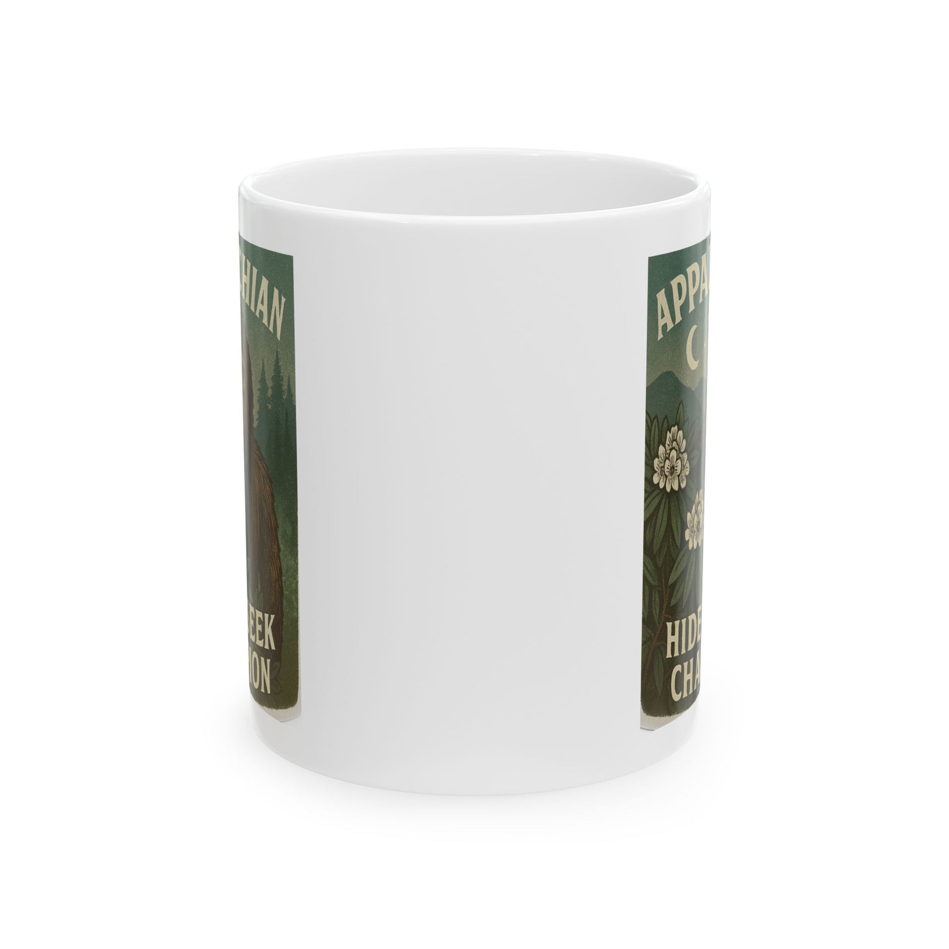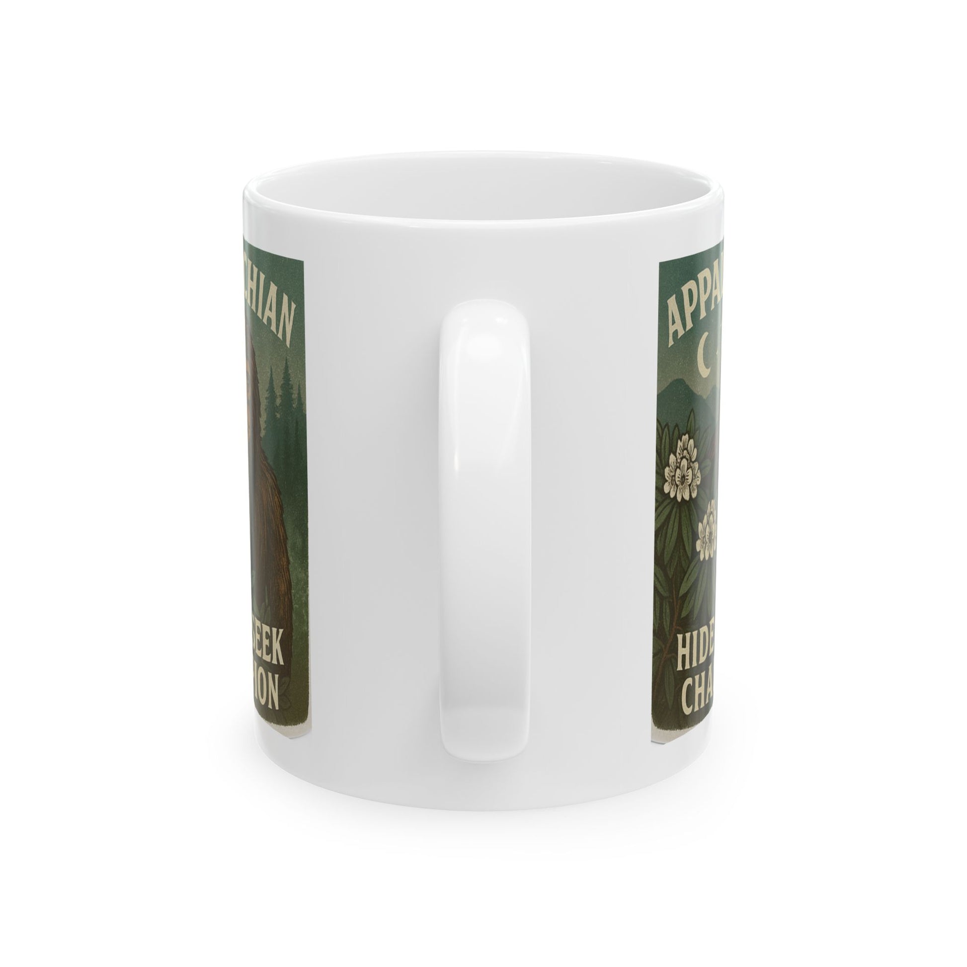 Sasquatch Hide & Seek Champion Ceramic Mug, Funny Gift, Appalachian Style, Nature Lover's Coffee Mug, Cool Mug for Friends