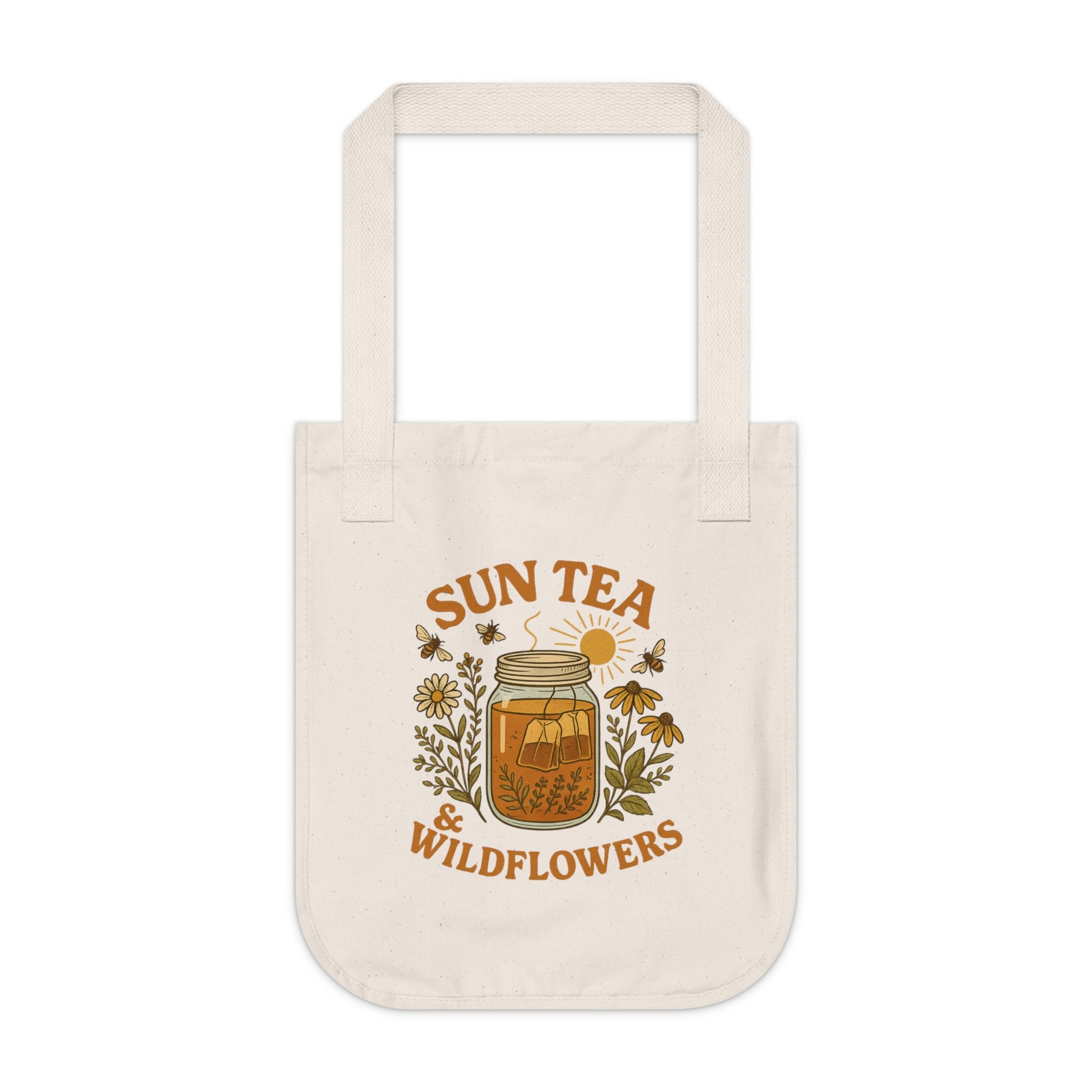 Sun Tea and Wildflowers Organic Canvas Tote Bag, Farmers Market Reusable Eco Friendly Bag, Nature Lover Gift, Sustainable Shopping Tote,