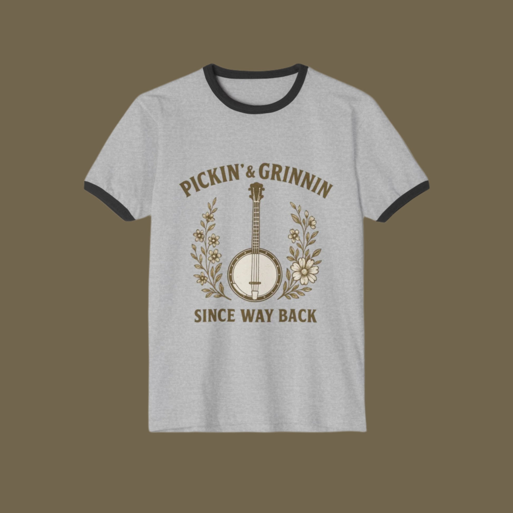 Vintage Banjo Unisex Ringer T-Shirt - Perfect for Musicians, Music Festivals, Gifts, Casual Wear, Bluegrass Lovers, Country Music
