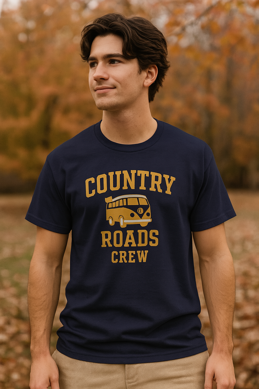 Show your West Virginia pride with this vintage-inspired Country Roads Crew T-shirt, designed for true Mountaineers. Featuring bold blue and gold tones, it’s the perfect way to rep your school spirit — whether you're tailgating on game day, catching up at alumni reunions, or gifting it to a fellow WVU fan. With a relaxed fit and soft cotton feel, this tee blends comfort and nostalgia into an everyday staple.