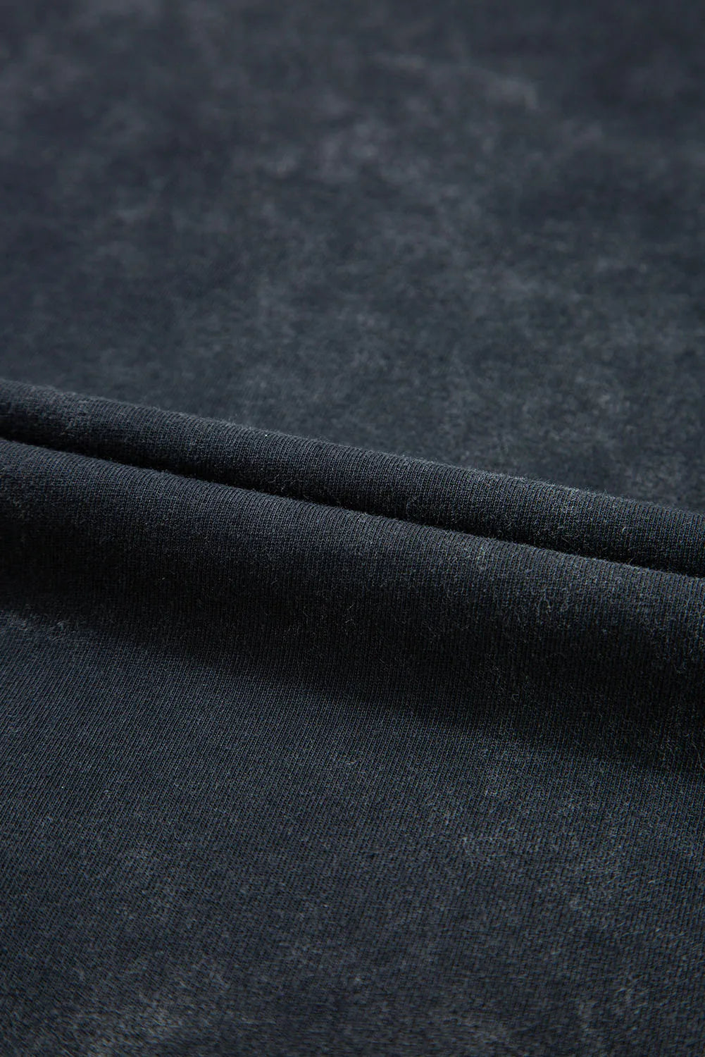 The washed black fabric gives it that perfectly lived-in look — soft, relaxed, and effortlessly cool. It’s the kind of tee you throw on with denim and boots for a night out, or layer under a blazer when you want a touch of edge with your polish.