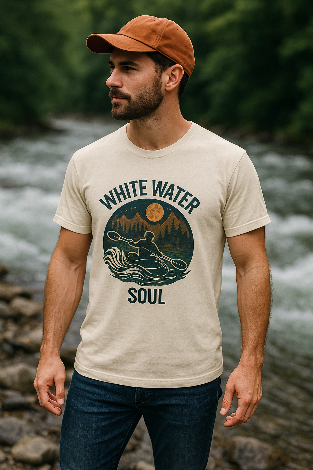 For the wild-hearted wanderers and river roamers — this Whitewater Soul T-Shirt is made for those who feel most at home on the water 🌊✨. Crafted from 100% ring-spun cotton, it's lightweight, soft, and built to move with you, whether you're paddling rapids or relaxing at the campfire.